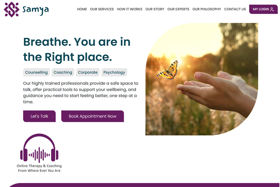A wellness-focused platform built for Samya,offering a safe space for mental health support,
